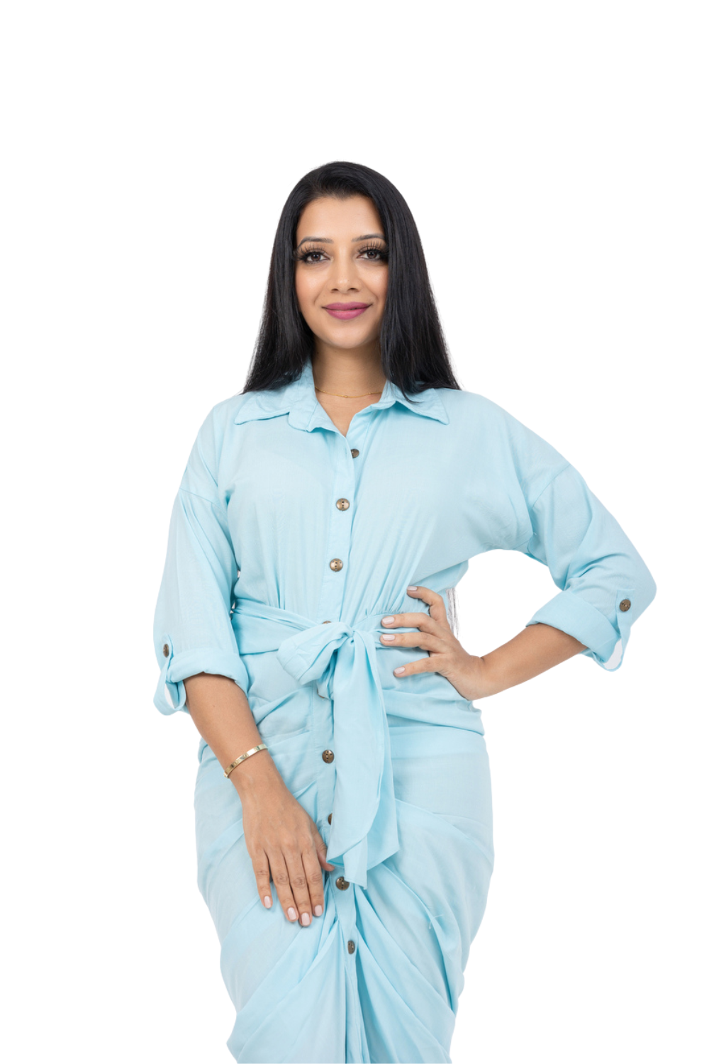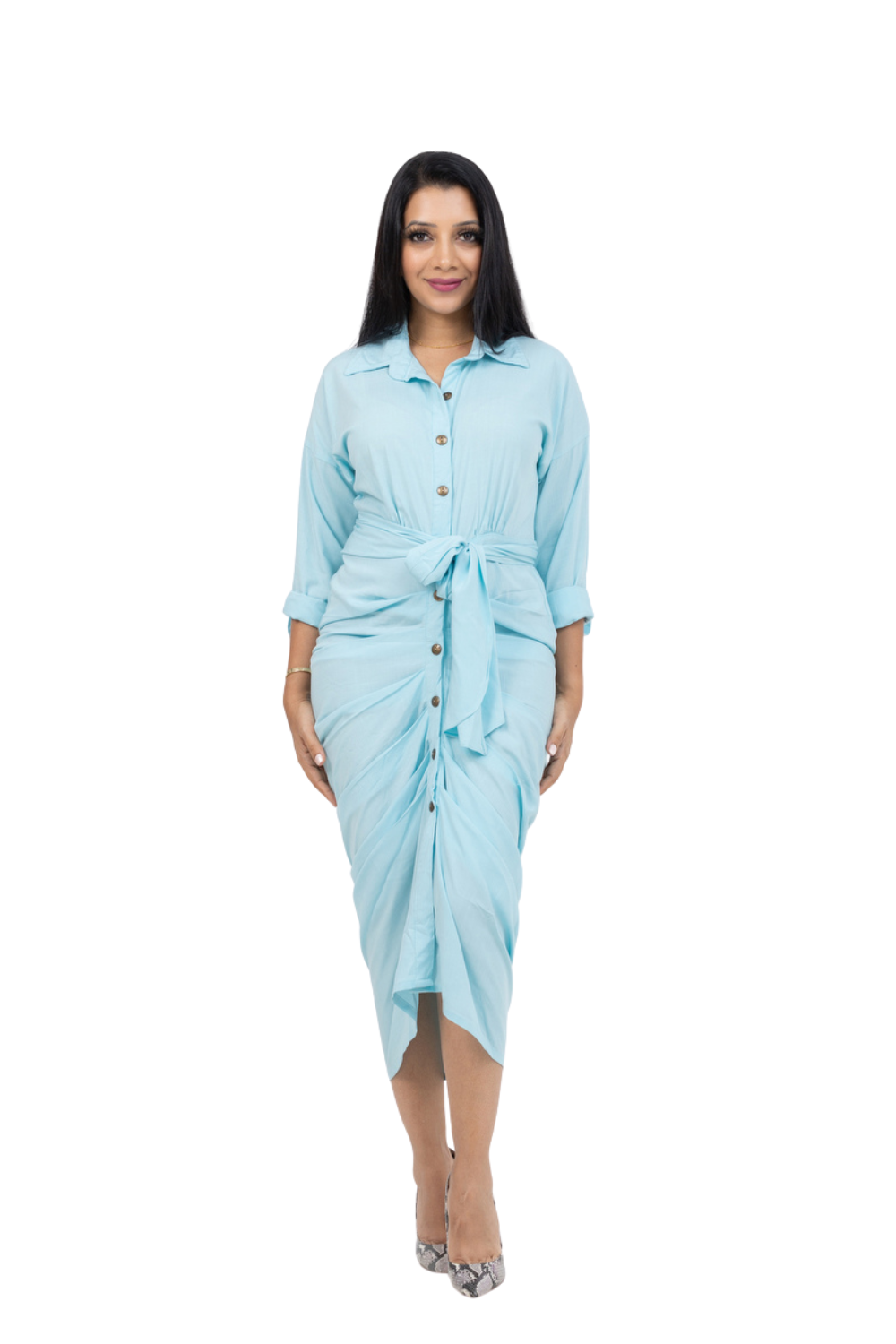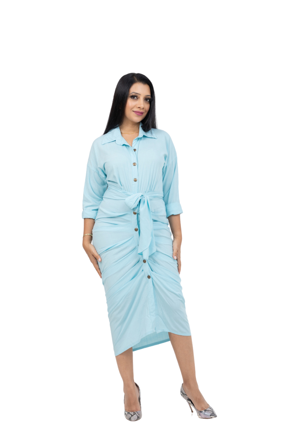 Baby blue long sleeved tie up dress in cotton fabric, Suitable for all occasions