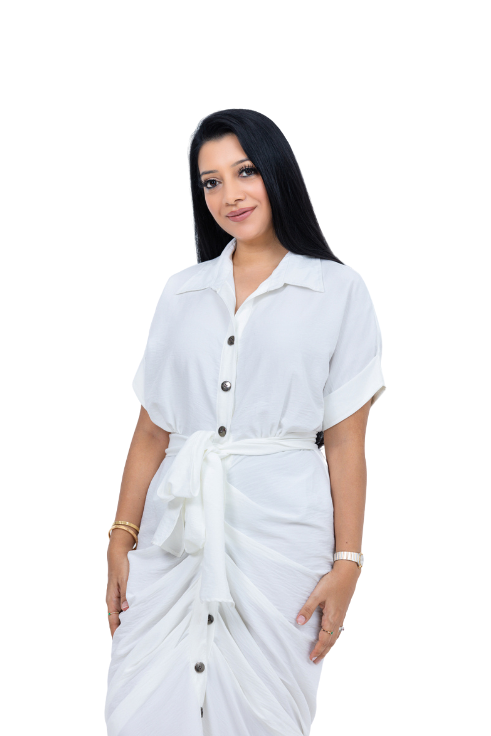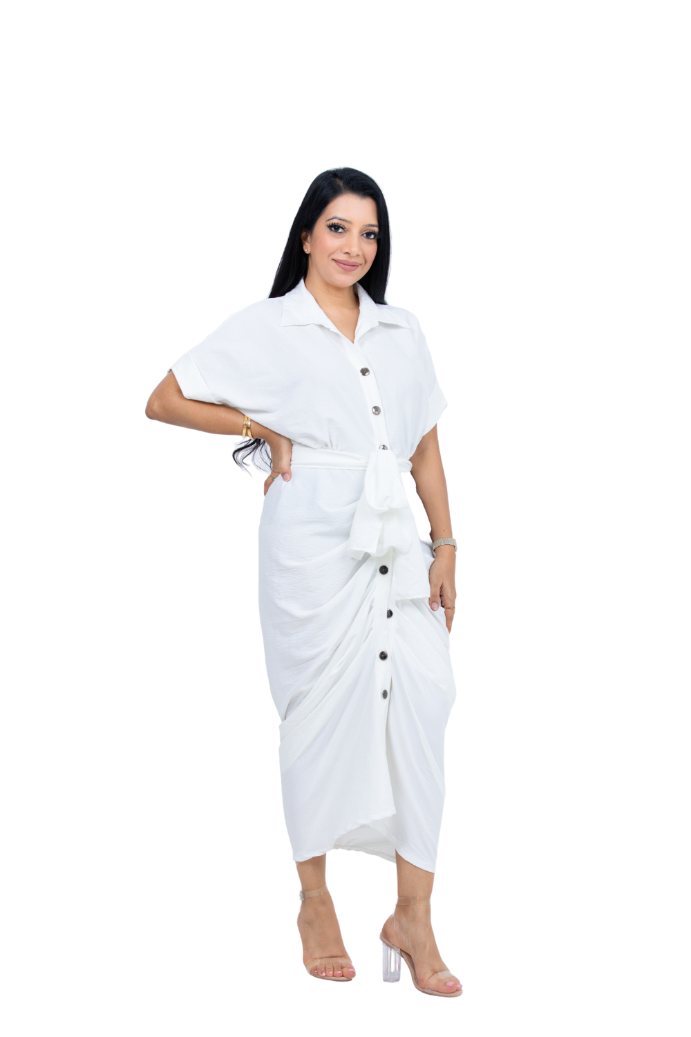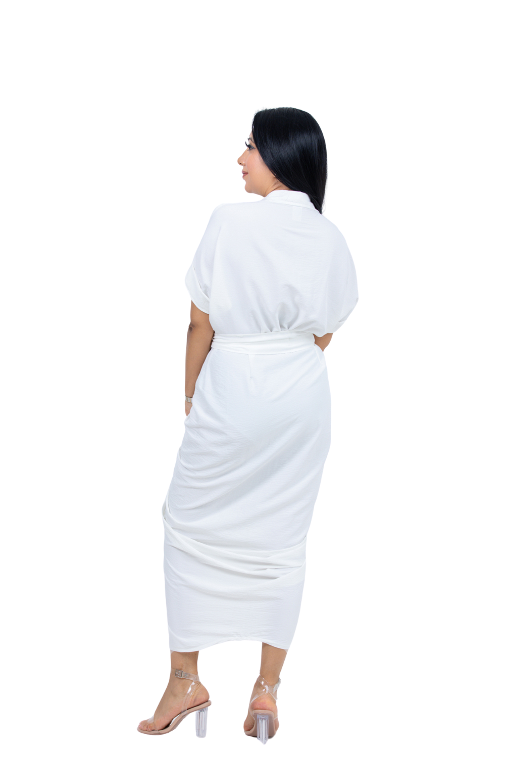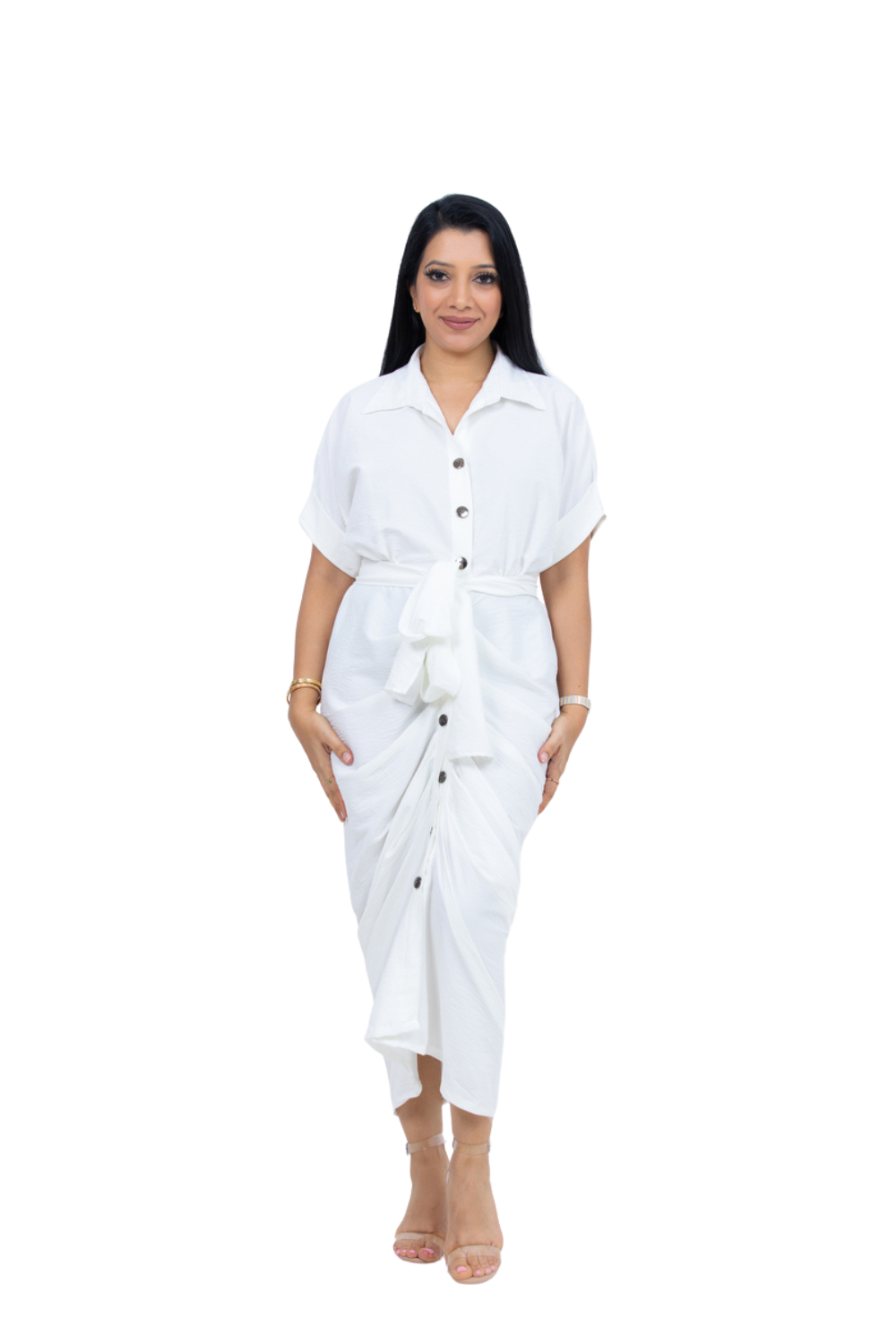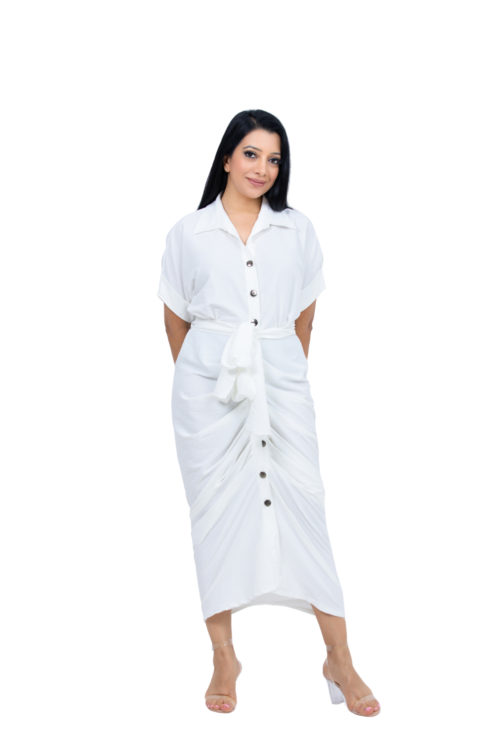 Short sleeve tie up dress in cotton fabric with tie up in front