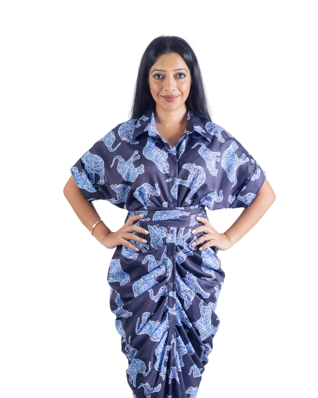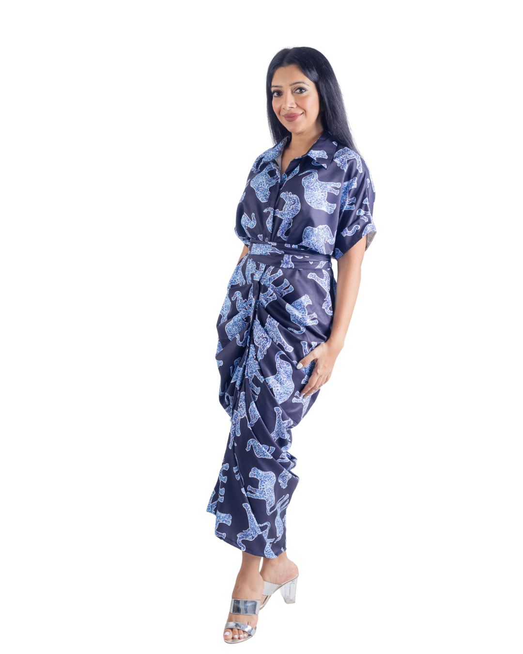 Dark Blue elephant print, button down tie up dress, Made out of cotton fabric